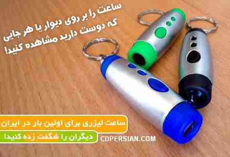 این محصول که چند ماه بیشتر نیست وارد بازار جهانی شده است یک ساعت فوق العاده زیبا می باشد که تفاوت ویژه ای با سایر ساعت ها دارد و تفاوت آن این است که دیگر نیاز نیست آن را به دستتان ببندید و می توانید آن را همیشه در جیب خود یا … حتی به عنوان جاکلیدی به همراه داشته باشید و هر زمان که نیاز به ساعت داشتید فقط با فشار دادن یک دکمه ساعت را بر روی دیوار یا هرجای دیگری به شکل فوق العاده زیبایی (لیزری) مشاهده نمایید …