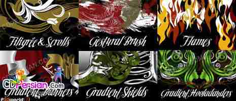* موضوعاتی همچون جهت و فلش های متحرک ، پاشیدن و ترشح خون متحرک، پاشیدن رنگ و ضربات قلم مو، طرح های متحرک دایره ای، تزئینات متحرک گل و بوته، شعله های آتش متحرک، پرچم و بنر متحرک، قاب و حفاظ متحرک، صفحات خط خطی و شلوغ متحرک و دهها موضوعات متحصر به فرد و بی نظیر دیگر ...