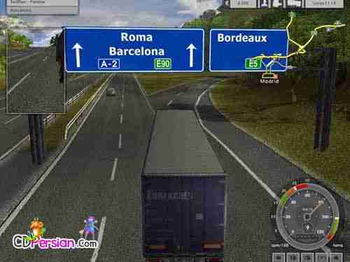 محیط بازی در اروپا در جریان است. میتوانید در نگاره ای از نقشۀ اروپا با کامیون خود رانندگی و به شهرهای مختلف سفر کنید.