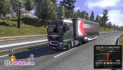 محیط بازی در اروپا در جریان است. میتوانید در نگاره ای از نقشۀ اروپا با کامیون خود رانندگی و به شهرهای مختلف سفر کنید.