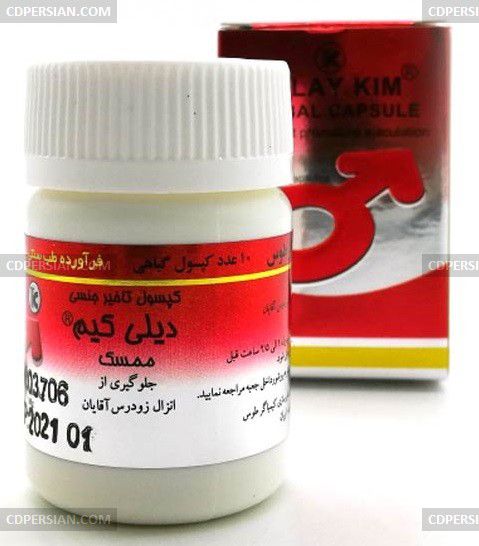 کپسول تاخیری دیلی کیم از محصولات شرکت داروسازی کیمیاگر توس است که به صورت کاملا گیاهی می تواند زود انزالی را رفع کرده و زمان انزال را به تاخیر بیاندازد.