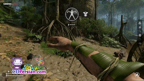 شما به عنوان مردی جوان بازی Green Hell را از جایی آغاز میکنید که به همراه همسر خود پا به یک جنگل گذاشته و در ابتدای کار باید بخش آموزشی را پشت سر بگذارید. در واقع بازی به شما آموزش میدهد که چگونه بازی کنید و چه کارهایی میتوانید انجام دهید. اولین آموزش شما صحبت کردن و انتخاب گزینه است که البته به نظر نمیرسد در روند بازی تاثیری داشته باشد.