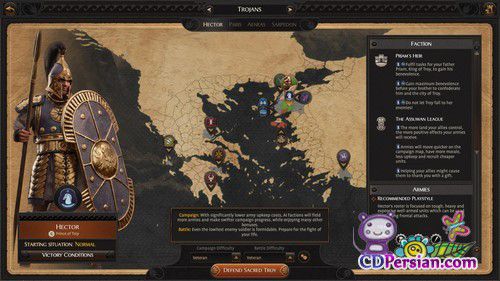 بازی A Total War Saga Troy در همان نگاه اول مخلوطیست از افسانه و تاریخ و ما هم با همین دید پیش میرویم. داستان Troy یا در زبان فارسی تروا باز میگردد. به حدود دوره ۱۰۰۰ تا ۱۲۰۰ پیش از میلاد و در عصر برنز. زمانی که بر اساس افسانه ایلیاد، قهرمانان بزرگ بر یونان حکومت میکردند.