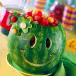 آموزش میوه آرایی و سفره آرایی توسط مدرس ساناز مینایی شامل : سبد هندوانه – گل از الویه – دلقک از الویه – ماهی از خیار – زنجیر از خیار – نهنگ از خیار – قو از سیب...
